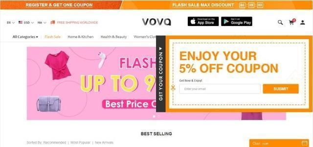 和Wish相同,Vova的商场也以最贱价格出售简直一切产品,从7美元的连衣裙到10美元的牛仔裤,再到45美元的智能手机包罗万象。Vova购物网站的规划与拼多多十分类似。