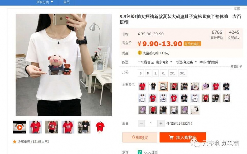 当然,并不是一切的9.9包邮产品,都会有这么高的赢利,有许多的确是厂家清库存,大甩货,为了寻求销量,薄利多销,降价售卖。
