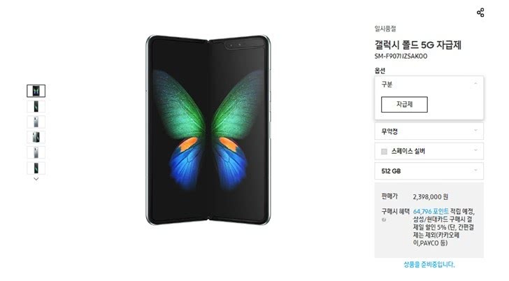 现在,三星Galaxy Fold 5G已登陆三星韩国官网。三星Galaxy Fold 5G折叠手机选用7.3英寸Infinity Flex显示器,份额为21:9,还有一块4.6英寸的副屏,价格239.8万韩元(约合人民币14335.4元)。