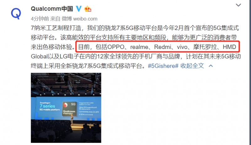 所以高通这音讯一出,许多人就猜想,谁将会首发全新的骁龙5G芯片呢?恰好在高通我国官博宣告信息后OPPO副总裁沈义人随即转发表明:OPPO将全球首发____。换句话说,这是不是意味着OPPO将会首先下降5G手机门槛,成为遍及5G手机的“前锋”?但有一点能够承认的是,市道大将会有最新一款的OPPO 5G手机。手机厂商那么多,为什么高通要挑选OPPO首发呢?