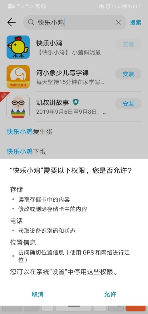 记者登录“高兴小鸡”,在该APP中未发现与地理方位相关的功用。实践上,有多款儿童APP均讨取了地理方位权限,如时髦小公主、美妙的怪物朋友等,但这些APP均供给了回绝选项,并非强制装置。