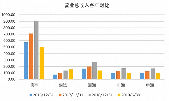 顺丰不只在规划上远超同行,并且在增速上也遥遥领先。数据显现,2019年顺丰控股的归母净赢利较上年同期增加近40%;而“三通一达”中体现最好的韵达,归母净赢利的增速也仅为29%;中通以及申通乃至出现了负增加的状况。