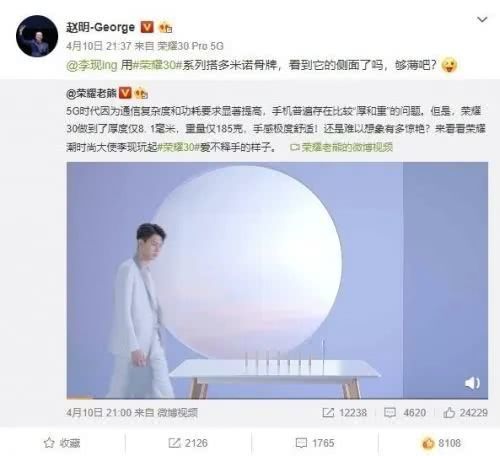 依据官方此前泄漏的音讯,全新的荣耀30系列旗舰将于4月15日正式发布。跟着发布时刻的日益接近,到现在咱们已把握了关于该系列新机十分具体的外观和装备细节。现在有最新音讯,继此前的烘托图曝光后,近来荣耀总裁赵明正式晒出了该机的预热视频,其真机外观也初次露脸。