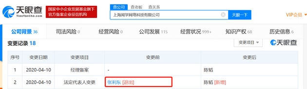 新浪科技讯 4月14日下午音讯,天眼查多个方面数据显现,4月10日,字节跳动旗下音乐短视频创造App musical.ly 的运营主体——上海闻学网络科技有限公司发作工商改变,张利东卸职法定代表人,陈韬接任。
