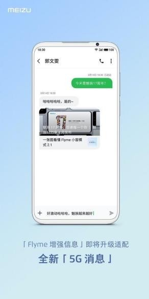 其实,魅族一直与通讯三大运营商保持紧密合作,早前已协同中国移动首发基于 RCS 技术研发的「Flyme 增强信息」功能。魅族表示将尽快完成对「5G 消息」功能的升级适配,积极推动 5G 消息产品商用。好消息是,新机魅族17只要打开 Flyme增强信息功能即可体验5G消息!