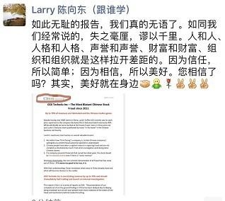 (陈向东朋友圈对做空的回应)