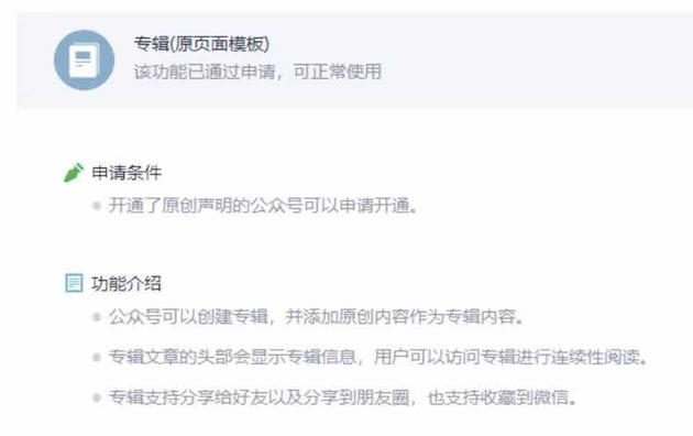 来历:新榜据介绍,现在仅注册了原创声明的大众号可以请求注册该功用。使用该功用,大众号可以创立专辑,并增加原创内容作为专辑内容;专辑文章的头部会显现专辑信息,用户都可以拜访专辑进行任连续性阅览;专辑支撑共享给老友以及共享到朋友圈,也支撑收藏到微信。