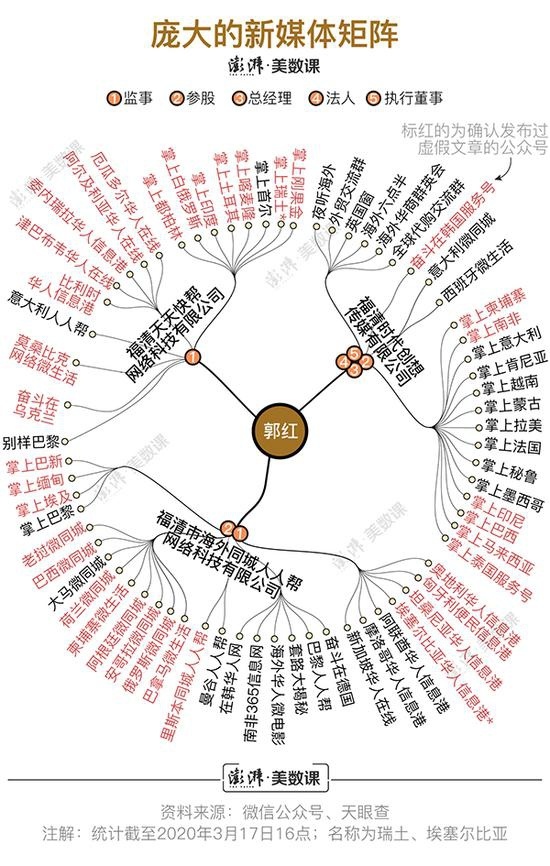 汹涌新闻首先曝光福建福清多家公司操控的很多微信公号发布系列“华商很难”虚伪文章。汹涌新闻美数课 陈良贤 制图