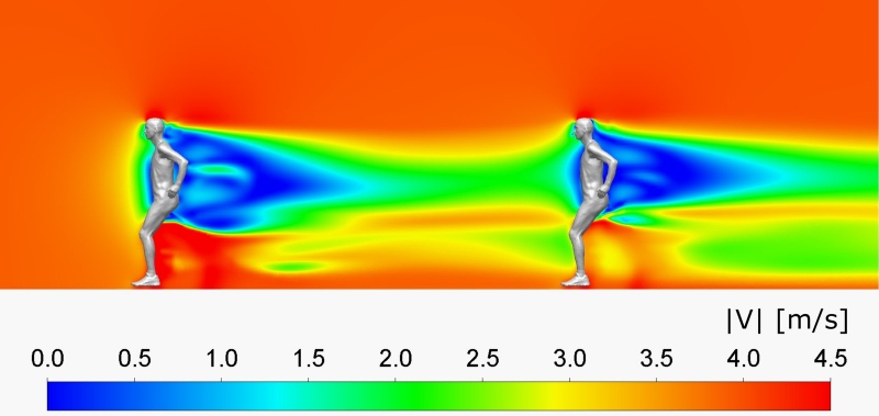 在这项有关新冠肺炎的研讨中,布洛克和他的团队进入了埃因霍温大学的风洞,以三种速度丈量跑步和骑行者周围的空气活动:正常的步行速度,快速跑步和中等自行车行进速度。虽然在整个测验中,研讨团队并未核算侧风、逆风或顺风时会发作什么,但考虑了飞沫的蒸腾影响。