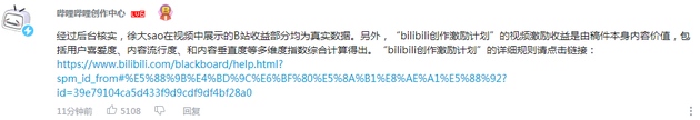 对此,B站回应称,通过后台核实,徐大sao在视频中展现的B站收益部分均为实在数据。别的,“bilibili创造鼓励方案”的视频鼓励收益是由稿件自身内容价值,包含用户喜欢度、内容盛行度、和内容笔直度等多维度指数归纳核算得出。