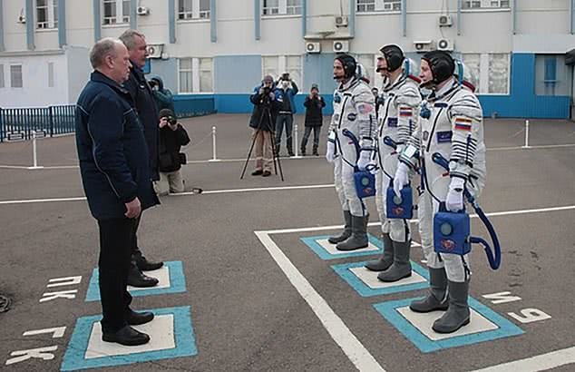 仪式前,米克林、罗戈津与三名宇航员举行了一场会议,但当时两人与宇航员之间隔着玻璃。随后罗戈津前往发射现场送别宇航员。