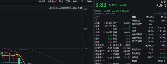 受此工作影响,如涵4月17日开盘一度跌幅超9%,到当日收盘跌幅为6.36%,报3.83美元。现在,如涵最新市值3.22亿美元。