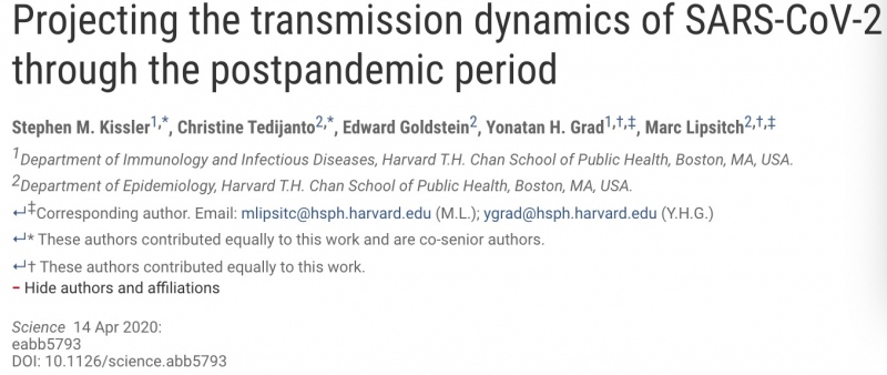 该研究于当地时间4月14日刊登于顶尖学术期刊《科学》(Science)杂志,通讯作者为哈佛大学流行病学教授Marc Lipsitch与哈佛大学免疫与传染病学教授Yonatan H. Grad。