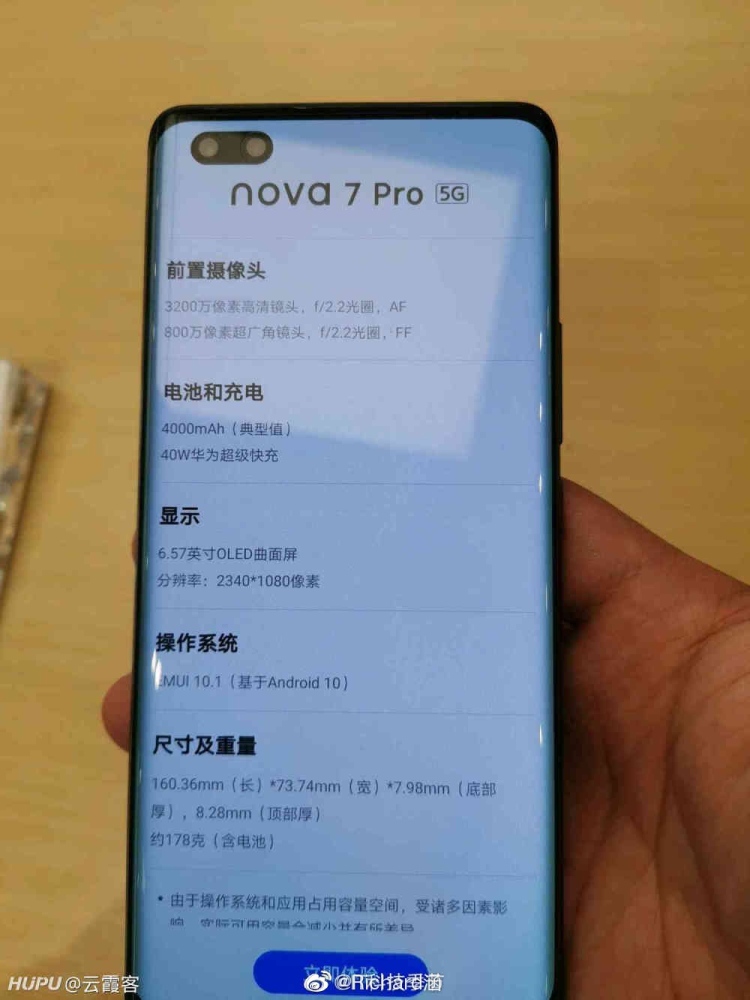近来,闻名博主@云霞客曝光了nova 7 Pro真机照。从图片上来看,这款新机选用双曲面OLED显示屏,双孔计划,分辨率为2340×1080,背部为矩阵相机。
