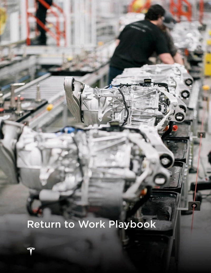 咱们正在花时间让咱们的人员在返岗之前承受恰当的训练,一切职工在回来任何特斯拉工厂作业之前都必须完结在线视频训练。咱们已拟定了全面的重返作业方案,包含建立跨功能呼应团队,内部医师每天都会依据地址和作业特定危险评价拟定健康和安全攻略,咱们正在持续查看咱们的流程,以保证它们在这个新环境中保证职工安全。