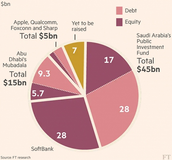 为了扩展规划,愿景基金在一只VC基金中引进了相似杠杆并购基金的债款融资形式,这在美国找不到先例。愿景基金终究筹措的970亿美元资金中,软银集团出资280亿美元,在其他LP的690亿美元出资中,约62%是有固定股息的优先股,实质上是债款。沙特主权出资基金投入的450亿美元中,就有280亿美元的优先股。