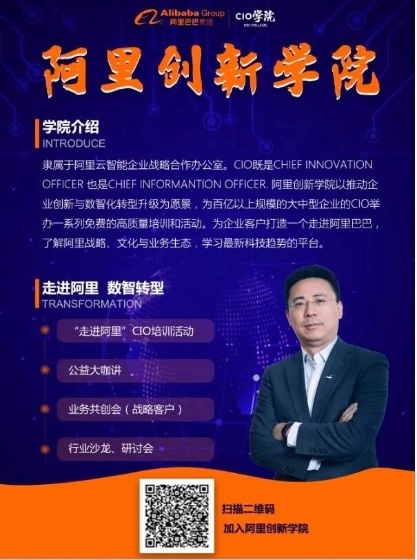 作为一个行业资深CIO,我深知这个群体的痛点与诉求,在集团的支持下,我于2019年5月份创办了阿里CIO学院,这既是一个首席信息官的培训学院,也希望办成一个首席创新官的培训阵地,欢迎大家通过钉钉群(30091720)加入阿里CIO学院。