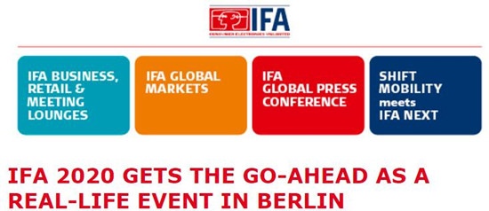 上月,IFA主办方表明,本年的柏林消费电子展将无法如常举行,因为受疫情影响,柏林政府宣告10月24日前制止超越5000人的聚会活动。IFA主办方表明,将经过一种立异的方式,来保证IFA能完成它的中心功用。