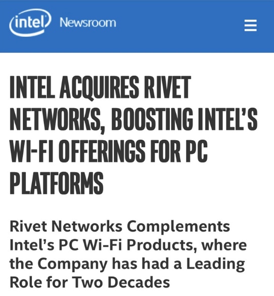 Rivet Networks在NIC范畴一直是Intel的竞争对手。经过此次收买,英特尔能够更专心游戏PC商场。