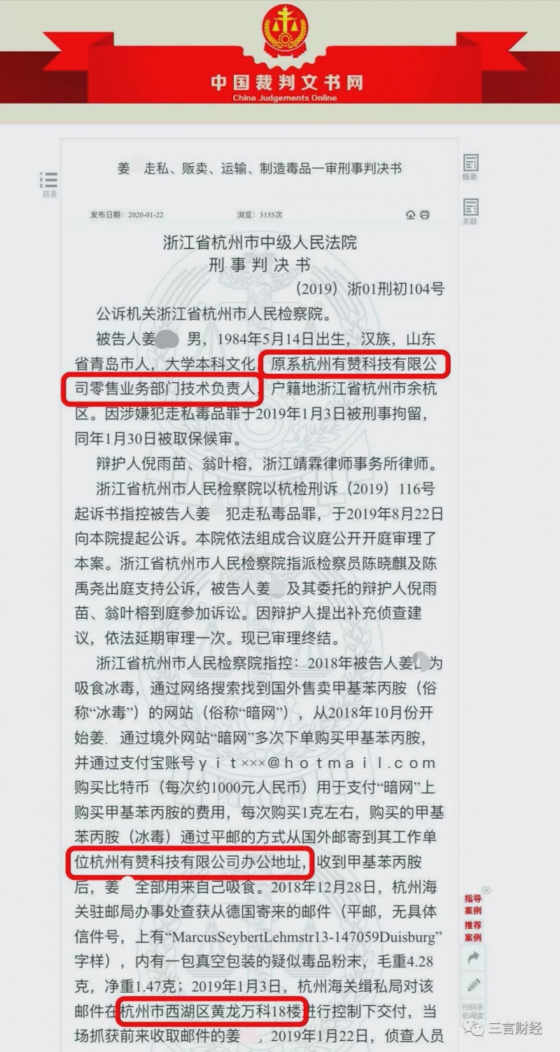 (原标题:原有赞一技能负责人私运啃咬毒品被判三年,毒品在公司抄获)
