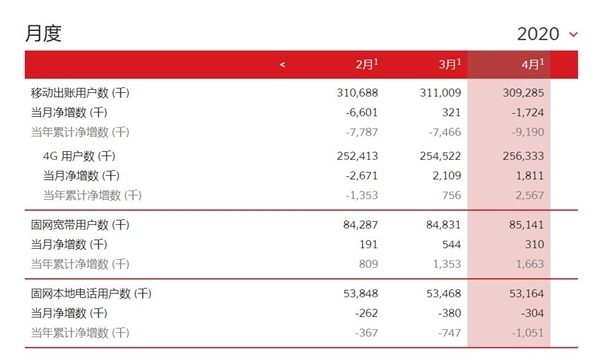 截止4月底,中国联通的移动出账用户数为3.093亿,当月净减172.4万,前四个月有三次大后退,仅有增加的3月份只加了32.1万人,导致本年累计净减919.0万,其间4G用户数2.563亿,当月净增181.1万,本年累计净增256.7万。