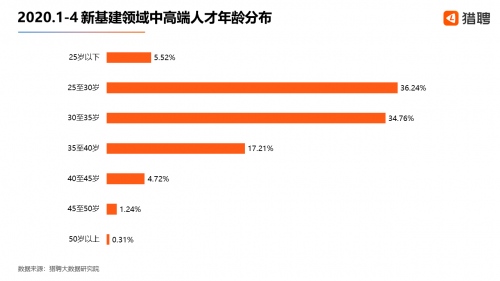 1、新基建中高端人才的年龄分布