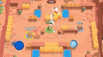 只从游戏本身来讲,《荒野乱斗》是一款轻量级3V3竞技游戏,卡通画风,俯视角双摇杆射击,标准模式中通过令敌人血量归零来获得游戏胜利——一眼过去就知道大概该怎么玩。