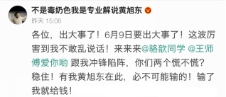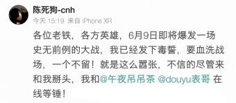 实际上,除了黄旭东老仙,还有他提到的LOL主持骆歆、《炉石传说》主播王师傅之外,自6月5日起,已经陆陆续续有约20位顶级游戏主播三三组队放出狠话——搞得这几天的主播圈子里俨然一副大战在即的样子。