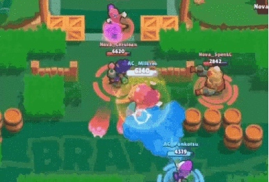 与易上手相对应的是《荒野乱斗》的快节奏。平均一个角色只能挨3到4枪的“高伤害”机制设定,让游戏在极其精简的玩法基础上,给玩家带来了一种爽快、刺激的游戏体验(一局可能只要两三分钟)。交战双方试探期结束后,光影绚烂的团战往往像烟花一般绽放一瞬,而胜负也在这短短几秒内决定。