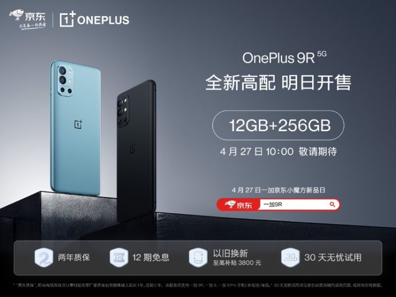4月26日,一加手机宣布一加 9R 12GB+256GB版本将于4月27日10点正式开售,用户可通过京东、欢太商城购买。