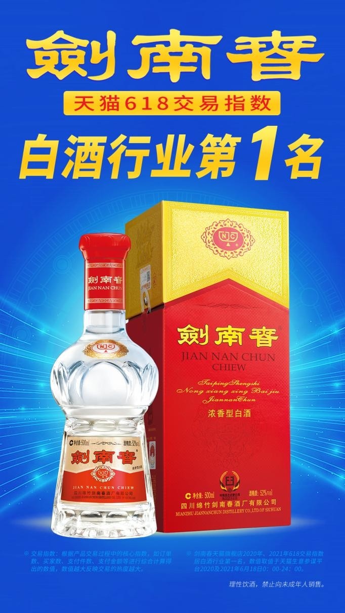 各大名优酒企纷纷入场618厮杀,从热销店铺排行榜单来看,排名靠前的多为头部品牌,这意味着白酒行业已经迈入行业高集中度的时代。其中,剑南春天猫平台官方旗舰店以超高人气和火爆的销量,勇夺天猫“618”白酒品牌旗舰店交易指数第一名。