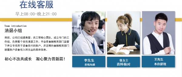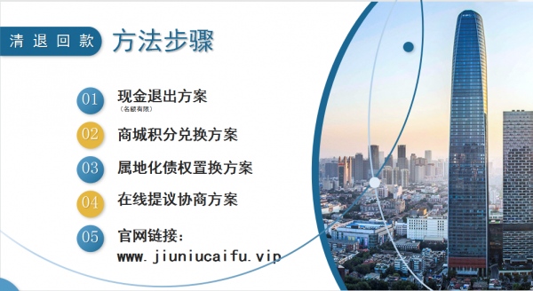 以上,是根据国家颁布的相关法.律.法.规做出的退出流程安排,具体请到九牛财富官網链接联系在线客服咨询清退兑付的疑问和详细了解更多信息。