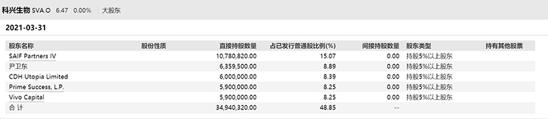 根据公开数据,科兴控股的注册地位于加勒比海的安提瓜岛,大股东中除尹卫东持股8.89%以外,公司第一大股东赛富亚洲基金、第三大股东永恩资本、第四大股东维梧资本、第五大股东第一环球基本合伙有限公司等多家股东均为外资。