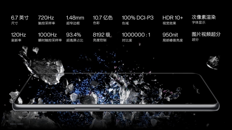 一加 Ace Pro 配备定制的 6.7 英寸 120Hz 超感柔性直屏,在色彩呈现、亮度调节等方面均有显著提升。一加 Ace Pro支持 720Hz 超高触控采样率,日常触控响应速度是画面显示速度的 6 倍,无论是日常使用,还是打游戏,都十分流畅跟手。一加 Ace Pro 还采用了新一代 AI 自适应自动亮度调节算法,屏幕总能自动调到最舒适的亮度,即使晚上使用也不怕高亮度伤害眼睛。