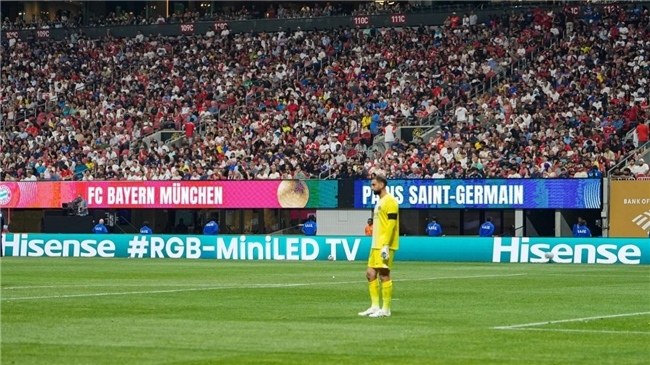事实上,今年6月的2025FIFA世俱杯赛场早已留下海信RGB-Mini LED的亮眼印记 ——“Hisense RGB-Mini LED TV”围挡广告强势刷屏,成为赛场外的一道科技风景线。全球首款量产的RGB-Mini LED电视UX,凭借超高色彩、超高亮度、超广视角、超低能耗等优势,为观众精准还原世俱杯赛场上每一处细腻色彩、捕捉每一次高速对抗的流畅细节,成为世俱杯赛场的 “视觉担当”。